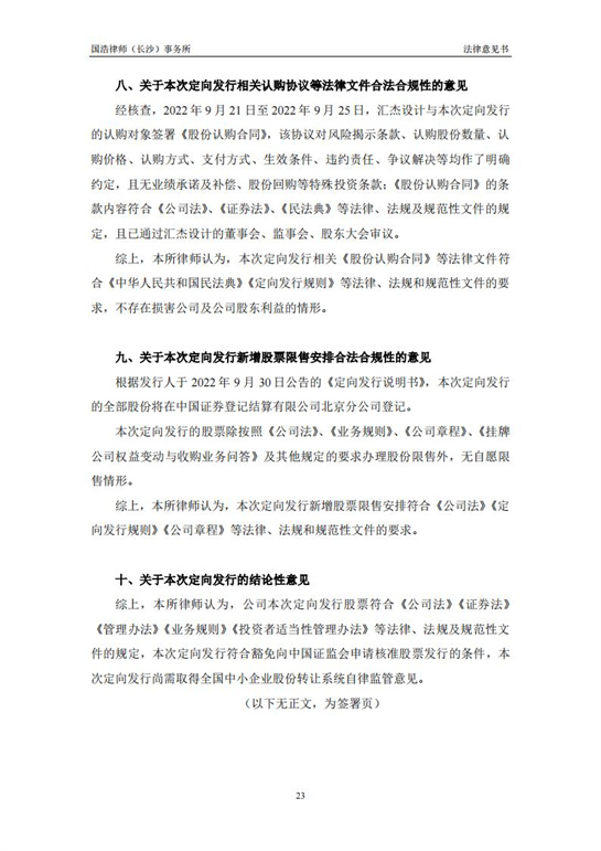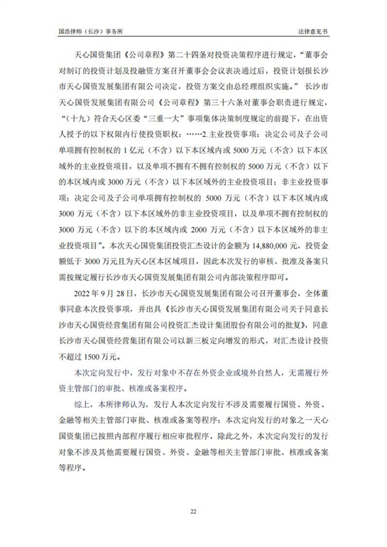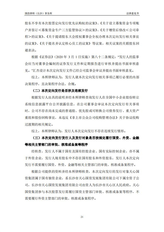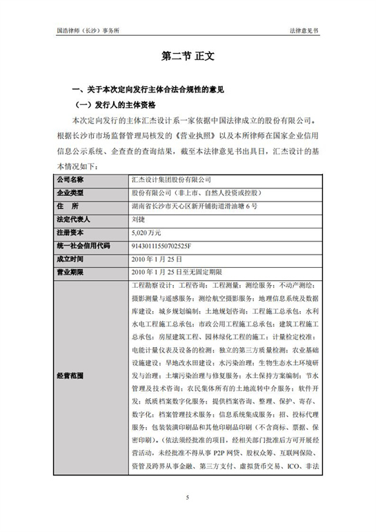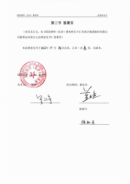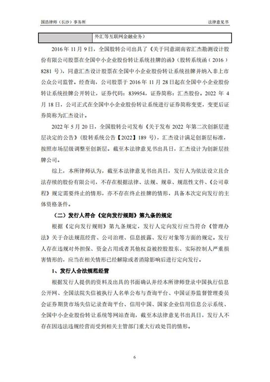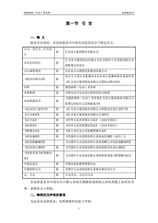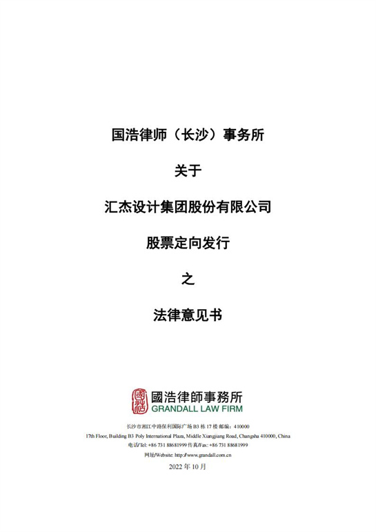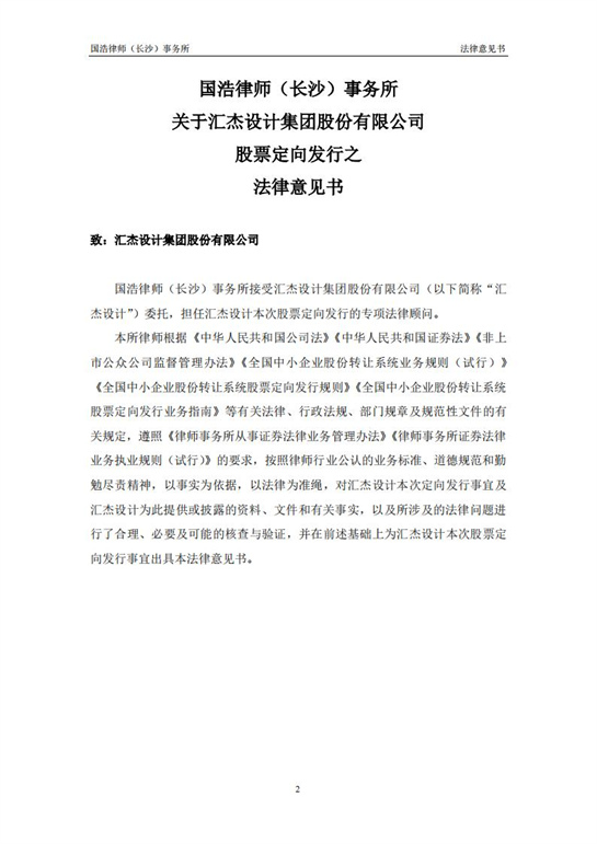 國浩律師(長(zhǎng)沙)事務(wù)所關(guān)于匯杰設(shè)計(jì)股票定向發(fā)行之法律意見書